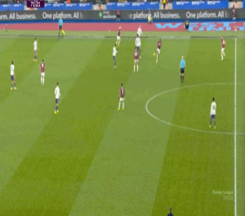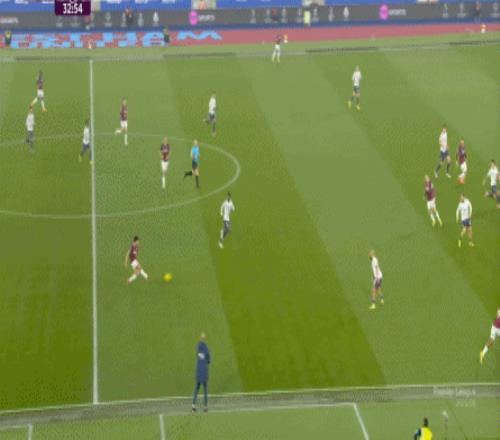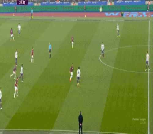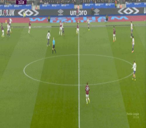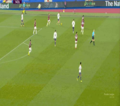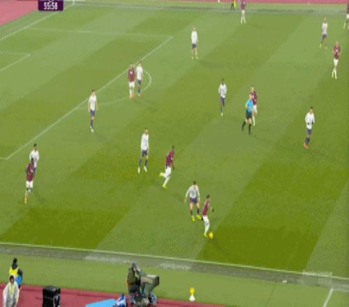 到了这个时候,此前在一周一赛时被掩盖的问题就会浮出水面,比如这次推进,好不容易打出了速度,但到了弱侧,你也不知道是达洛特传大了,还是阿玛德-迪亚洛追不上了,反正一次很好的推进变成了西汉姆联的门球: