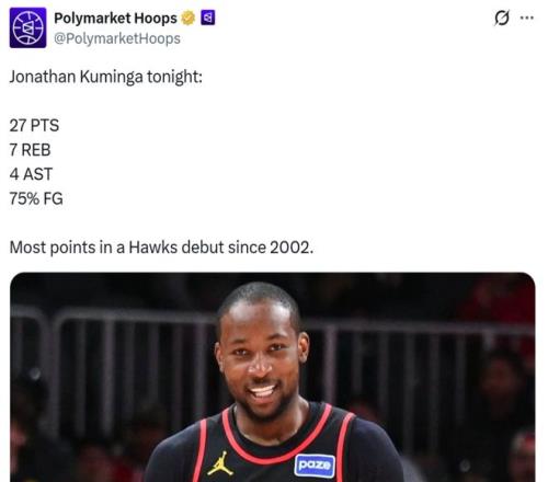 受困于伤病问题,此前库明加一直没有出战,本场是其交易加盟老鹰后的首秀,结果这名此前一直被外界嫌弃球商不足的年轻锋线却打出惊艳表现强势回击。