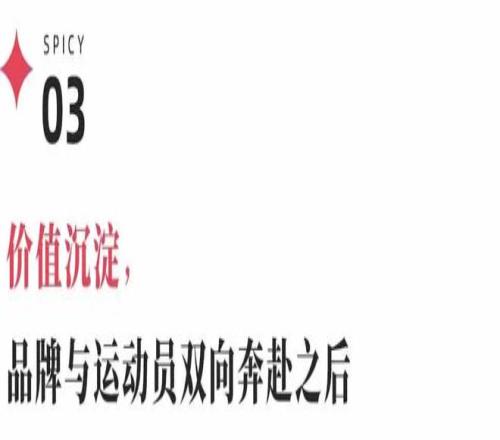 此外,通过深度绑定运动员,能够将拼搏、坚韧、自律等正面形象潜移默化注入品牌形象,塑造品牌气质,实现消费者从认可运动员到认同品牌的情绪转移。