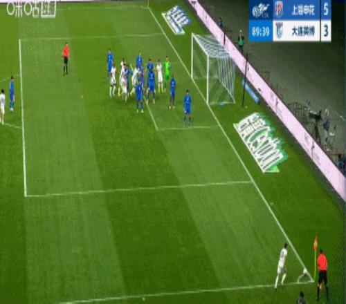 第90分钟,英博右侧角球进攻,冯劲门前打空门得分,大连英博3-5!