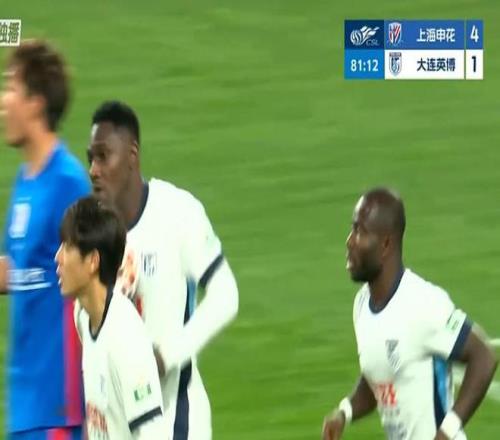 第81分钟,马莱莱右路抢断后进攻,禁区内倒三角回传中路,阿奇姆彭推射破门,大连英博将比分扳为2-4!